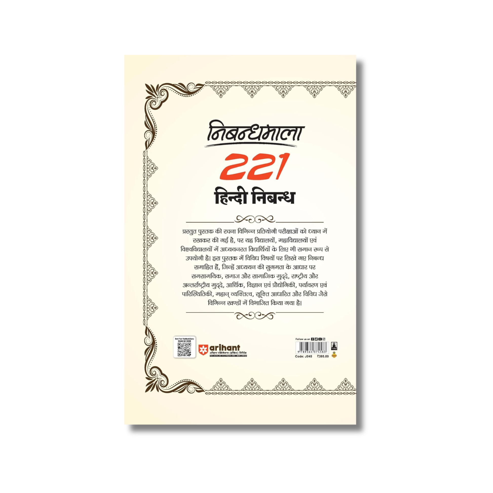 Overview: Nibandhmala 221 is a masterfully curated anthology of Hindi essays designed to meet the rigorous standards of modern competitive exams. Recognizing that essay writing is a test of both knowledge and personality, this book provides deep insights into 221 diverse topics. It is the ultimate resource for aspirants of UPSC (Civil Services), State PSCs, and SSC, as well as students aiming for top grades in school and college board exams.