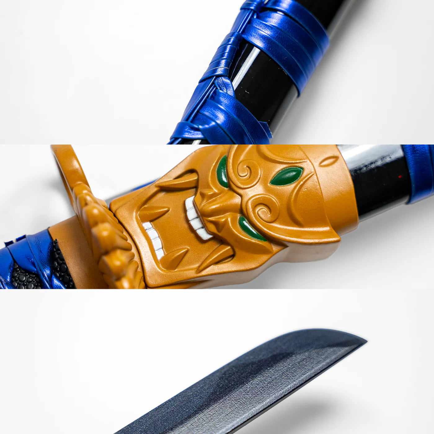 At a commanding 103 cm total length, this decorative replica captures the proportions of a traditional katana while adding bold anime-inspired styling. The sculpted oni face near the guard, detailed fittings, and curved blade profile make it a powerful centerpiece for collectors, cosplay displays, and themed interiors.