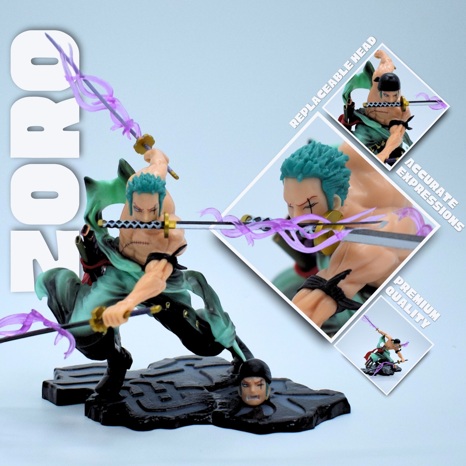 | Material | Premium PVC Design: Inspired by One Piece, capturing Zoro’s signature battle mode stance. |